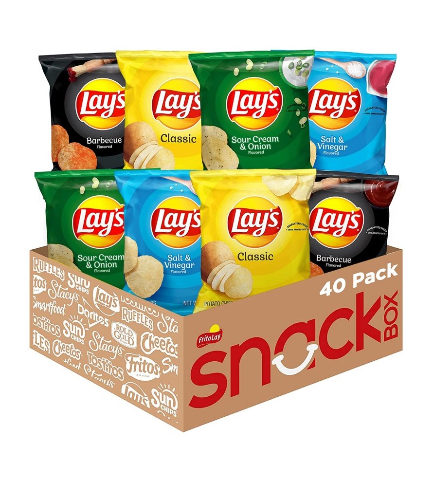 40 count pack featuring 10 of each of these Layās potato chips favorites in 1 oz bags ā Classic, Barbecue, Sour Cream and Onion, and Salt and Vinegar